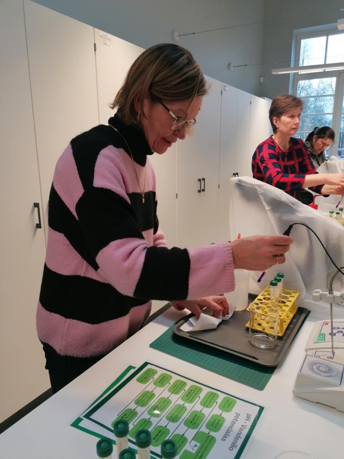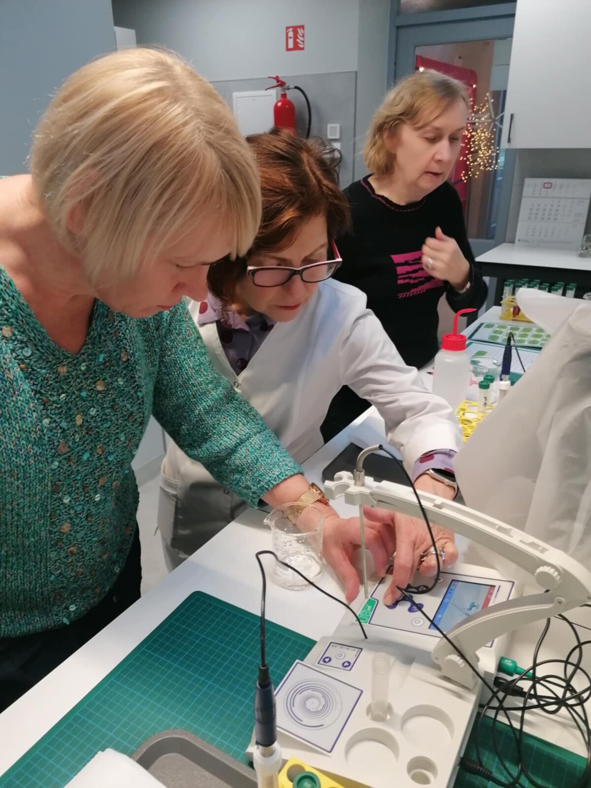 Pirmojoje veikloje mokytojai tyrė skirtingų gėrimų ir maisto produktų pH. Atliekant šią užduotį buvo integruojamos chemijos, biologijos, fizikos ir matematikos žinios. Dalyviai lavino eksperimentinius gebėjimus, mokėsi ruošti mikroskopinius preparatus bei tobulino darbo su mikroskopavimo technika įgūdžius.
