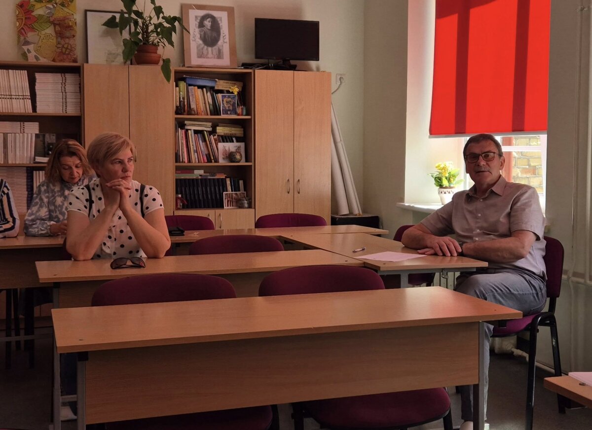 Susirinkime dalyvavo ir gimnazijos direktorius (t.p.alumnas) Vidmantas Sutnikas ir papasakojo, kuo dabar gyvena gimnazija.