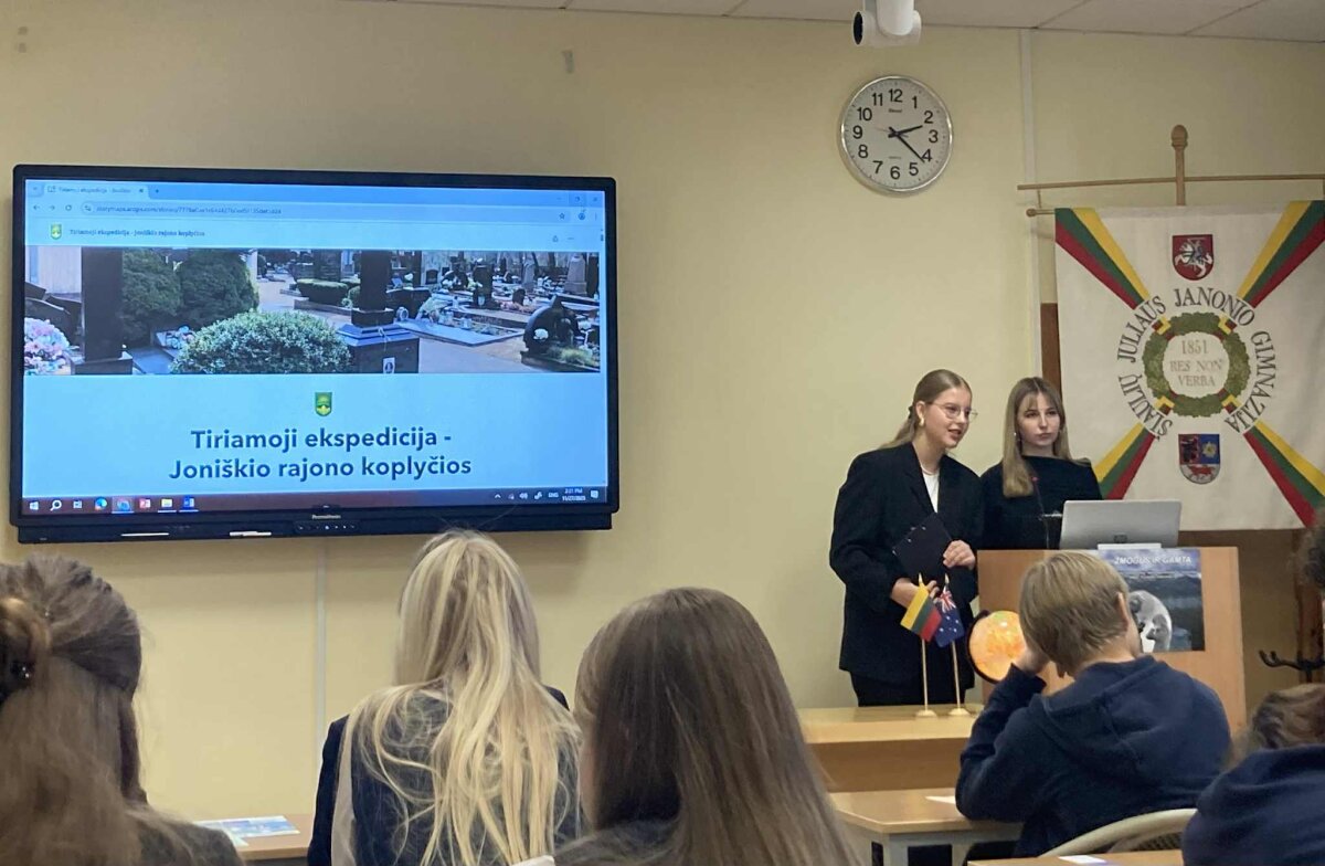 Konferencijoje Austėja Zemkutė ir Urtė Šakytė (IIc klasė) paruošė ir skaitė pranešimą „Tiriamoji ekspedicija: Joniškio rajono koplyčios”. Geografijos mokytoja Giedrė Motiejuitė skaitė pranešimą „Klimatas keičiasi. Vandenyno lygis kyla”.