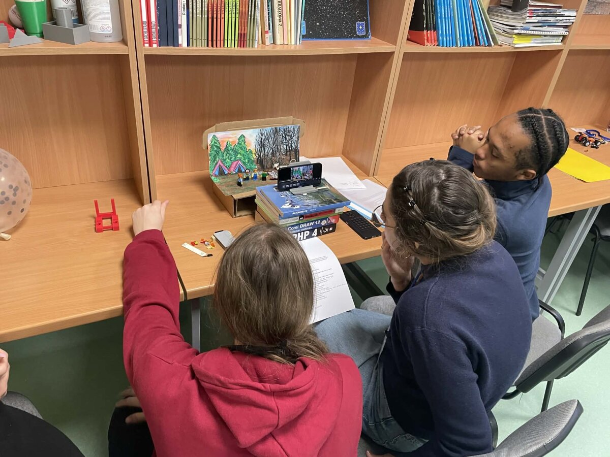 Pirmąją dieną svečius pasitikome gimnazijoje, supažindinome su mokykla, organizavome komandos formavimo žaidimus. Vėliau vyko projekto dirbtuvės – mokiniai kūrė sustabdyto kadro filmukus, rengė garso įrašus bei pildė projekto dienoraščius. Kūrybinis darbas skatino ne tik gilintis į klimato kaitos temą, bet ir stiprino bendradarbiavimo bei komunikavimo anglų kalba įgūdžius.