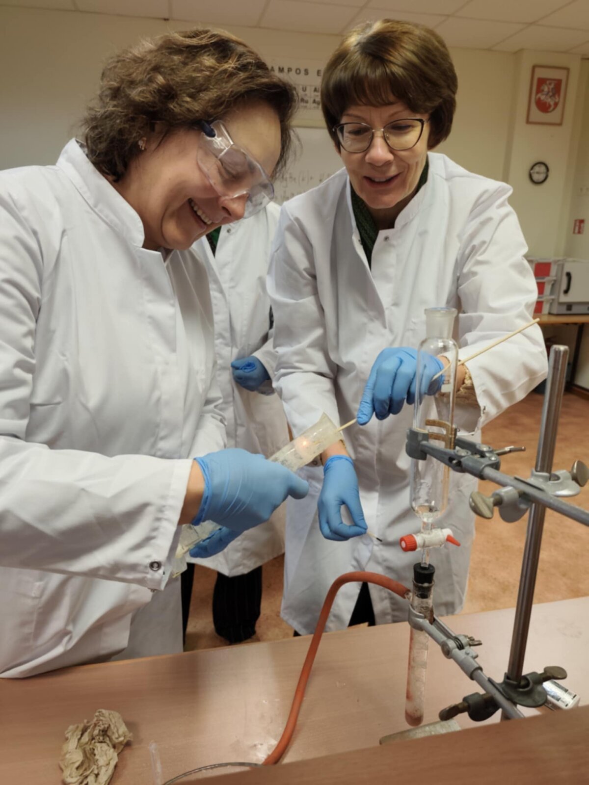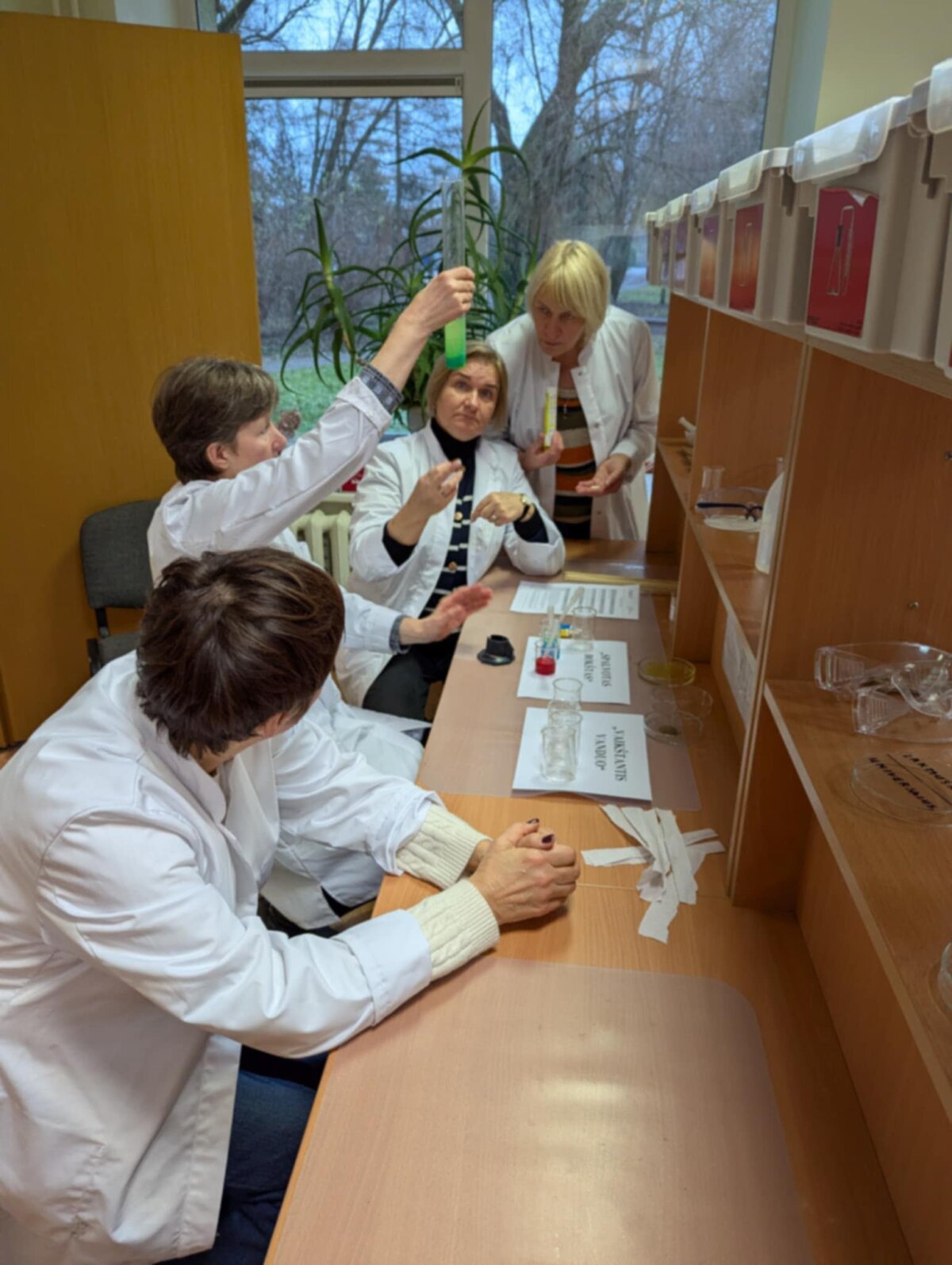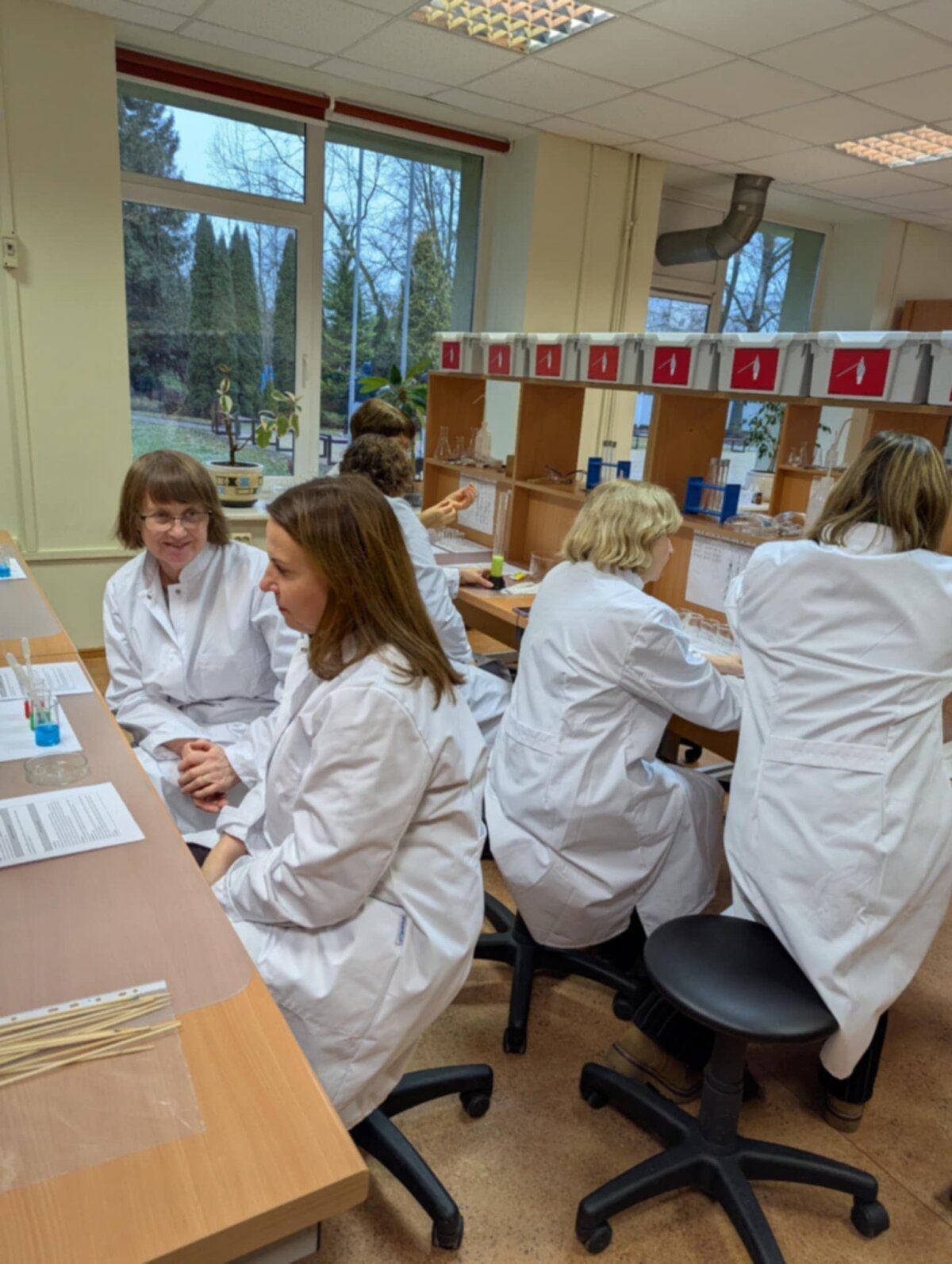 Dvi dienas trukusiuose mokymuose gimnazijos chemijos, biologijos ir fizikos mokytojai vedė praktinius užsiėmimus rajono pedagogams, stiprindami jų dalykines bei praktines kompetencijas.