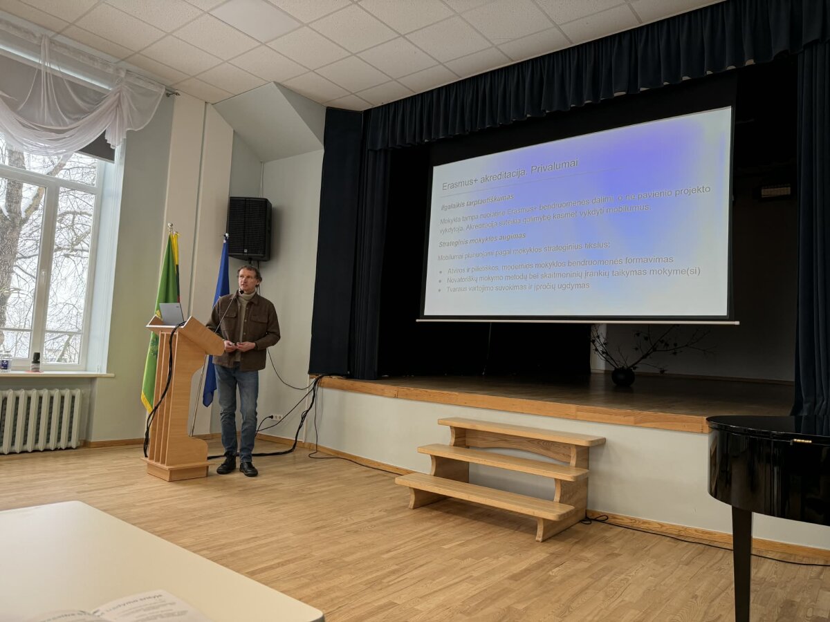 2026 – 02 – 19 dieną gimnazijoje vyko metodinė diena savivaldybės mokytojams “Tarptautiniai projektai – pagalba STEAM ugdymo srityje”. Mokytojai iš rajono mokyklų dalijosi gerąja patirtimi apie vykdomus tarptautinius projektus STEAM srityje, jų privalumus iš iššūkius. Taip skatinamas dialogas, bendradarbiavimas tarp savivaldybės mokyklų. Diskusijos metu pritarta, jog tarptautiškumas yra būtinas siekiant pasaulinės darnos ir ilgalaikio tvarumo. Tarptautiškumo skatinimas mokykloje yra svarbus, siekiant skatinti tarpkultūrinį supratimą, bendradarbiavimą ir įvairių šalių bei kultūrų vertinimą.