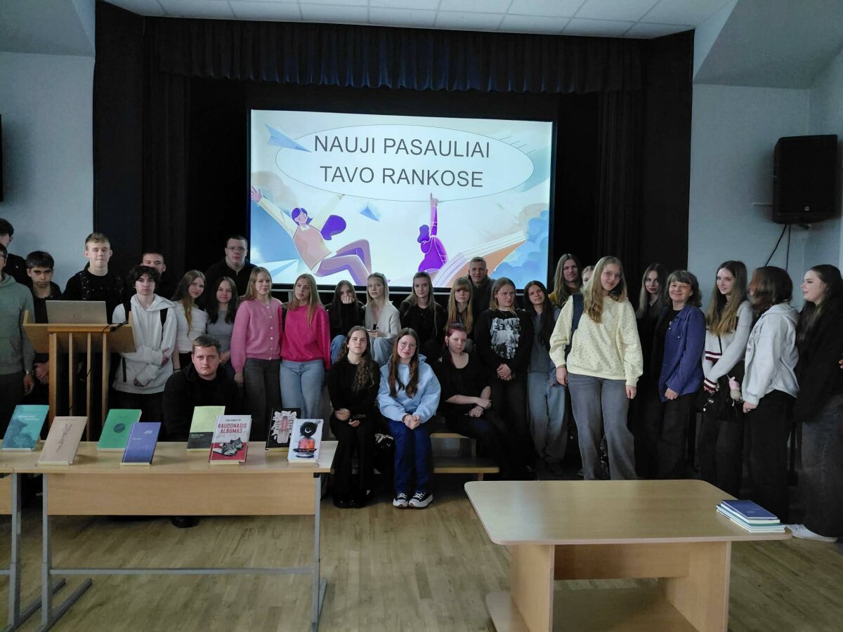 Balandžio 24 dieną gimnazijoje vyko baigiamasis TŪM projekto Skaitymo skatinimo programos edukacinis renginys „Nauji pasauliai tavo rankose“. Jono Avyžiaus viešosios bibliotekos darbuotojos Rita ir Gintarė supažindino projekto dalyvius, II g klasių moksleivius, su naujausiomis knygomis, kurias šiais mokslo metais įsigijo „Aušros“ gimnazijos biblioteka. Gimnazijos viešnios skaitė ir komentavo knygų ištraukas, suteikė įdomios informacijos apie jų autorius ir pasidalino asmeninėmis įžvalgomis.