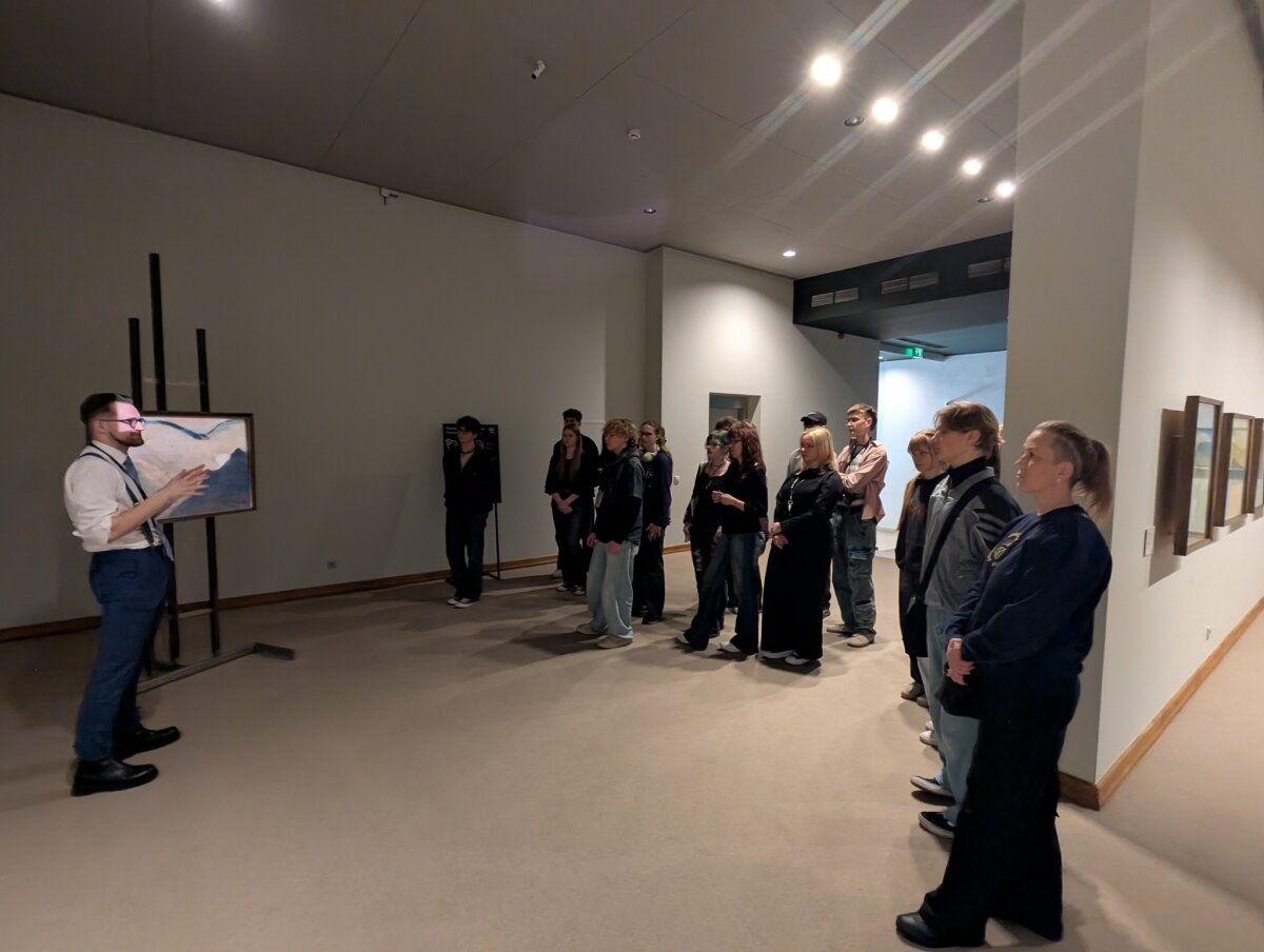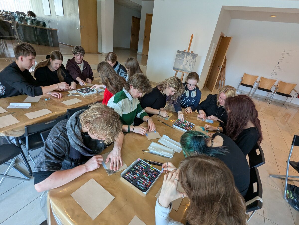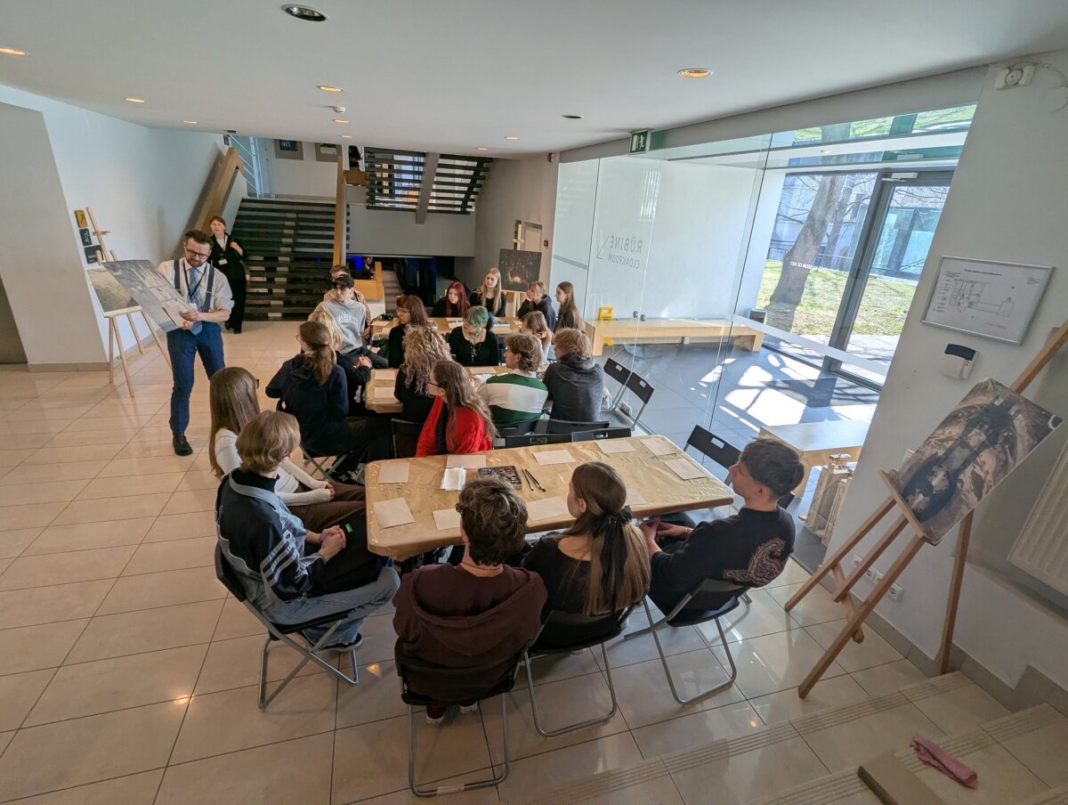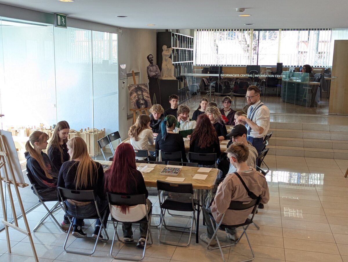 Pirmoji išvykos dalis vyko Nacionaliniame M. K. Čiurlionio dailės muziejuje, kur mokiniai dalyvavo edukacijoje „Čiurlionio technika“. Jos metu jie susipažino su garsiojo lietuvių menininko naudotomis priemonėmis, sužinojo kuo jis piešė ir tapė, kodėl daugelis jo paveikslų laikui bėgant pakeitė spalvas ir kodėl jie yra itin trapūs. Apžiūrėję originalius kūrinius bei sužinoję apie jų saugojimo subtilybes, mokiniai praktinėje dalyje patys išbandė pastelės techniką ir kūrė simbolinius paveikslus. Kitoje edukacijoje mokiniai gilinosi į Mikalojus Konstantinas Čiurlionis kūryboje aptinkamus simbolius. Analizavę jų reikšmes, jie patys kūrė savo simboliką, dėliodami ir interpretuodami įvairius ženklus bei prasmes. Vėliau mokiniai patyrė įspūdingą virtualios realybės kelionę „Angelų takais“. Ši patirtis leido pasinerti į unikalų menininko pasaulį, kuriame buvo galima iš arti „aplankyti“ apie 60 jo kūrinių, tarp jų – „Ramybė“, „Angelėliai“, „Aukuras“, „Angelas“, „Žinia“, „Saulė“. Virtuali erdvė suteikė galimybę meną pažinti naujai – per pojūčius ir emocijas.
