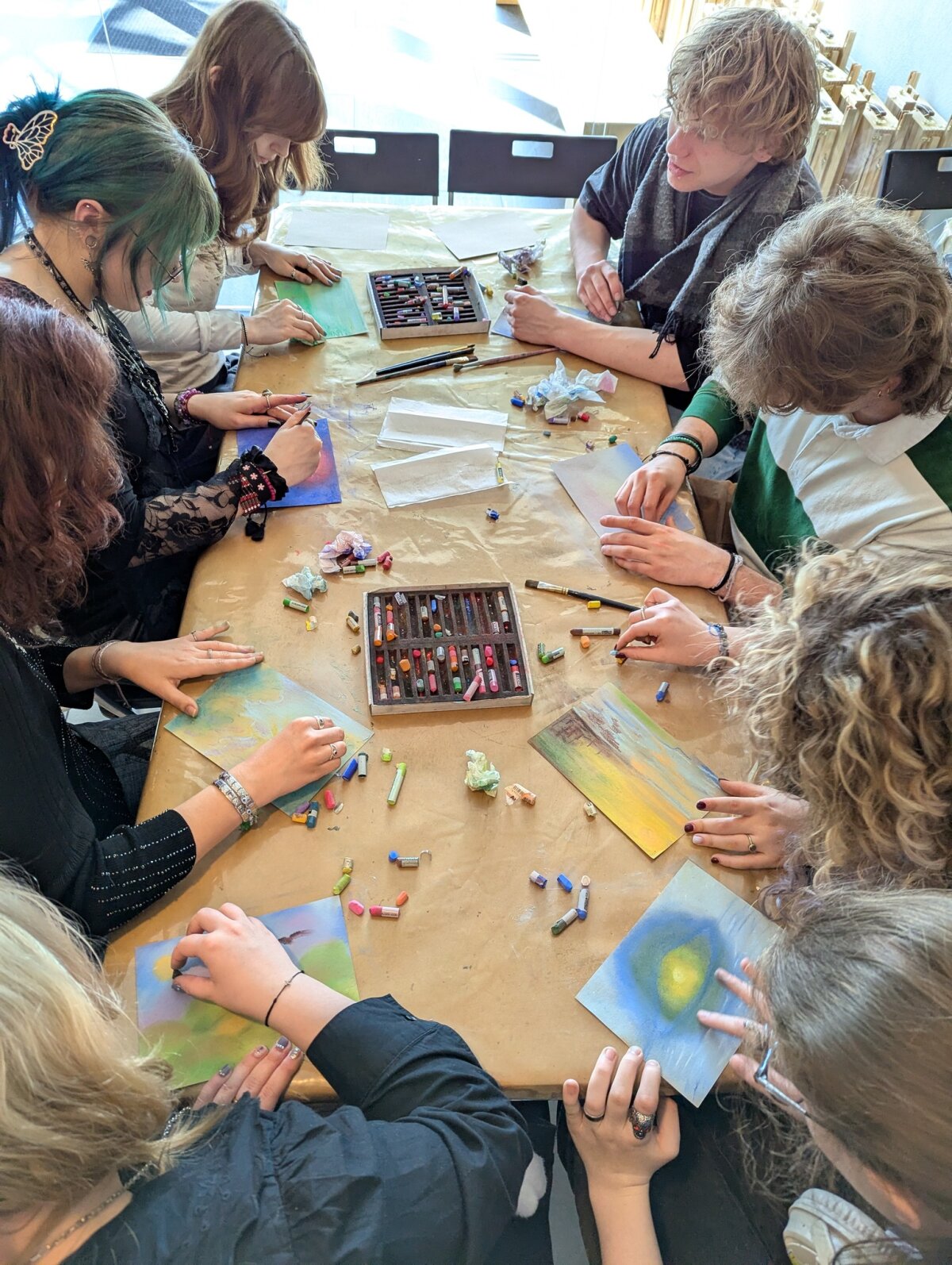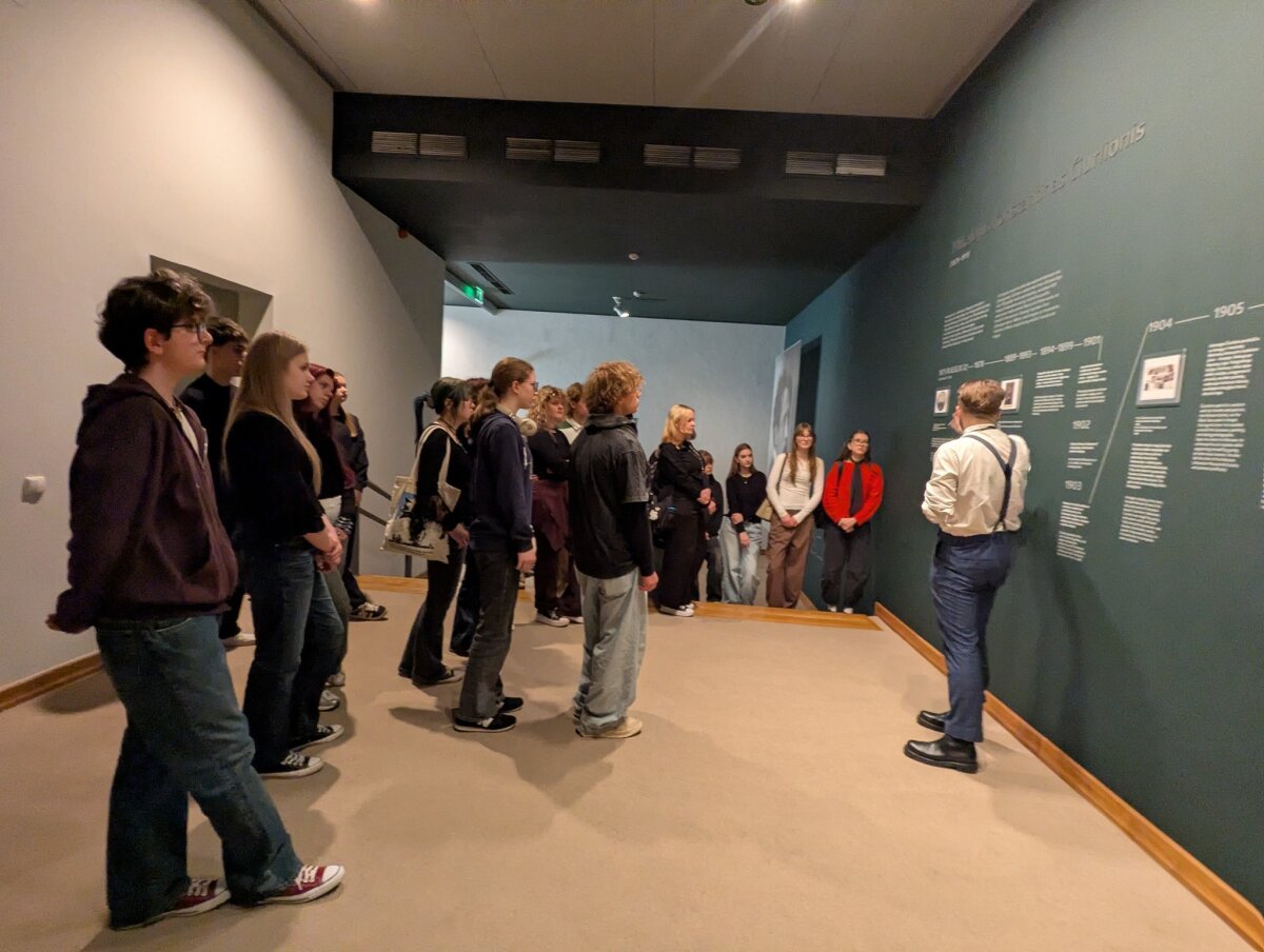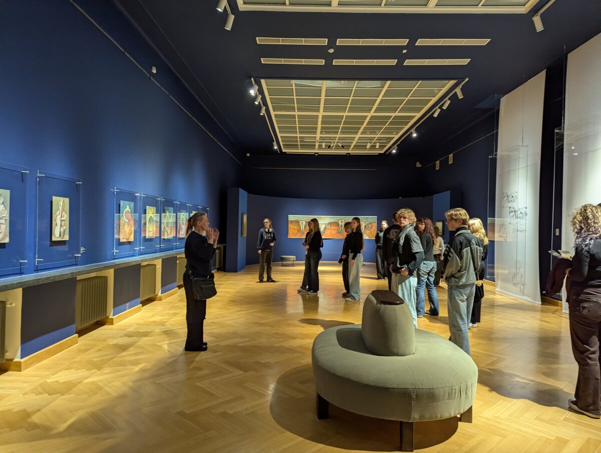 Pirmoji išvykos dalis vyko Nacionaliniame M. K. Čiurlionio dailės muziejuje, kur mokiniai dalyvavo edukacijoje „Čiurlionio technika“. Jos metu jie susipažino su garsiojo lietuvių menininko naudotomis priemonėmis, sužinojo kuo jis piešė ir tapė, kodėl daugelis jo paveikslų laikui bėgant pakeitė spalvas ir kodėl jie yra itin trapūs. Apžiūrėję originalius kūrinius bei sužinoję apie jų saugojimo subtilybes, mokiniai praktinėje dalyje patys išbandė pastelės techniką ir kūrė simbolinius paveikslus. Kitoje edukacijoje mokiniai gilinosi į Mikalojus Konstantinas Čiurlionis kūryboje aptinkamus simbolius. Analizavę jų reikšmes, jie patys kūrė savo simboliką, dėliodami ir interpretuodami įvairius ženklus bei prasmes. Vėliau mokiniai patyrė įspūdingą virtualios realybės kelionę „Angelų takais“. Ši patirtis leido pasinerti į unikalų menininko pasaulį, kuriame buvo galima iš arti „aplankyti“ apie 60 jo kūrinių, tarp jų – „Ramybė“, „Angelėliai“, „Aukuras“, „Angelas“, „Žinia“, „Saulė“. Virtuali erdvė suteikė galimybę meną pažinti naujai – per pojūčius ir emocijas.